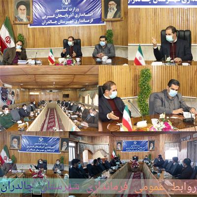 کارگروه ترویج فرهنگ ایثار و شهادت شهرستان به ریاست محمدزاده فرماندار شهرستان چالدران و با حضور حجت الاسلام محمدزاده امام جمعه و اعضای این کارگروه در محل سالن اجتماعات فرمانداری شهرستان چالدران برگزا