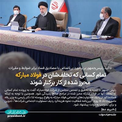 #عکس_نوشت | رئیسجمهور در نشست هیئتدولت: تمام کسانی که تخلفشان در فولاد مبارکه محرز شده است از کار برکنار شوند.