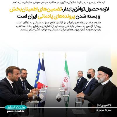 رئیسجمهور در دیدار امانوئل مکرون: لازمه حصول توافق پایدار، تضمینهای اطمینانبخش و بستهشدن پروندههای پادمانی ایران است