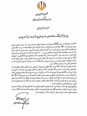 پیام وزیر محترم فرهنگ و ارشاد اسلامی به مناسبت اولین پاسداشت حماسه نبرد چالدران