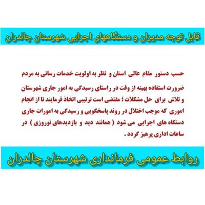 قابل توجه مدیران و دستگاه های اجرایی شهرستان چالدران