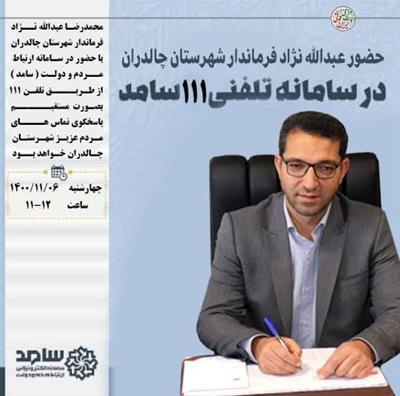 عبدالله نژاد فرماندار شهرستان شهرستان چالدران در سامانه سامد برای پاسخگویی به سؤالات مردم