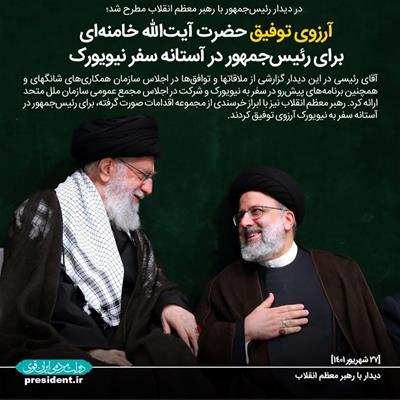 آرزوی توفیق رهبر معظم انقلاب برای رئیسجمهور در آستانه سفر به نیویورک