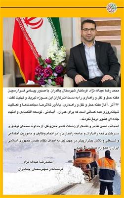 پیام تبریک محمدرضا عبدالله نژاد فرماندار شهرستان چالدران به مناسبت هفته حمل ونقل و راهداری
