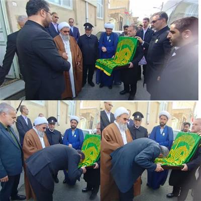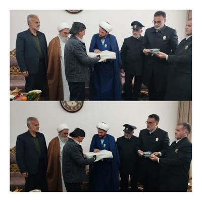 خادمان رضوی حامل پرچم متبرک حرم حضرت امام رضا (ع) با حضور در دفتر امام جمعه چالدران ضمن دیدار و گفتگو با ایشان از محمد رضا عبدالله نژاد فرماندار چالدران تجلیل کردند
